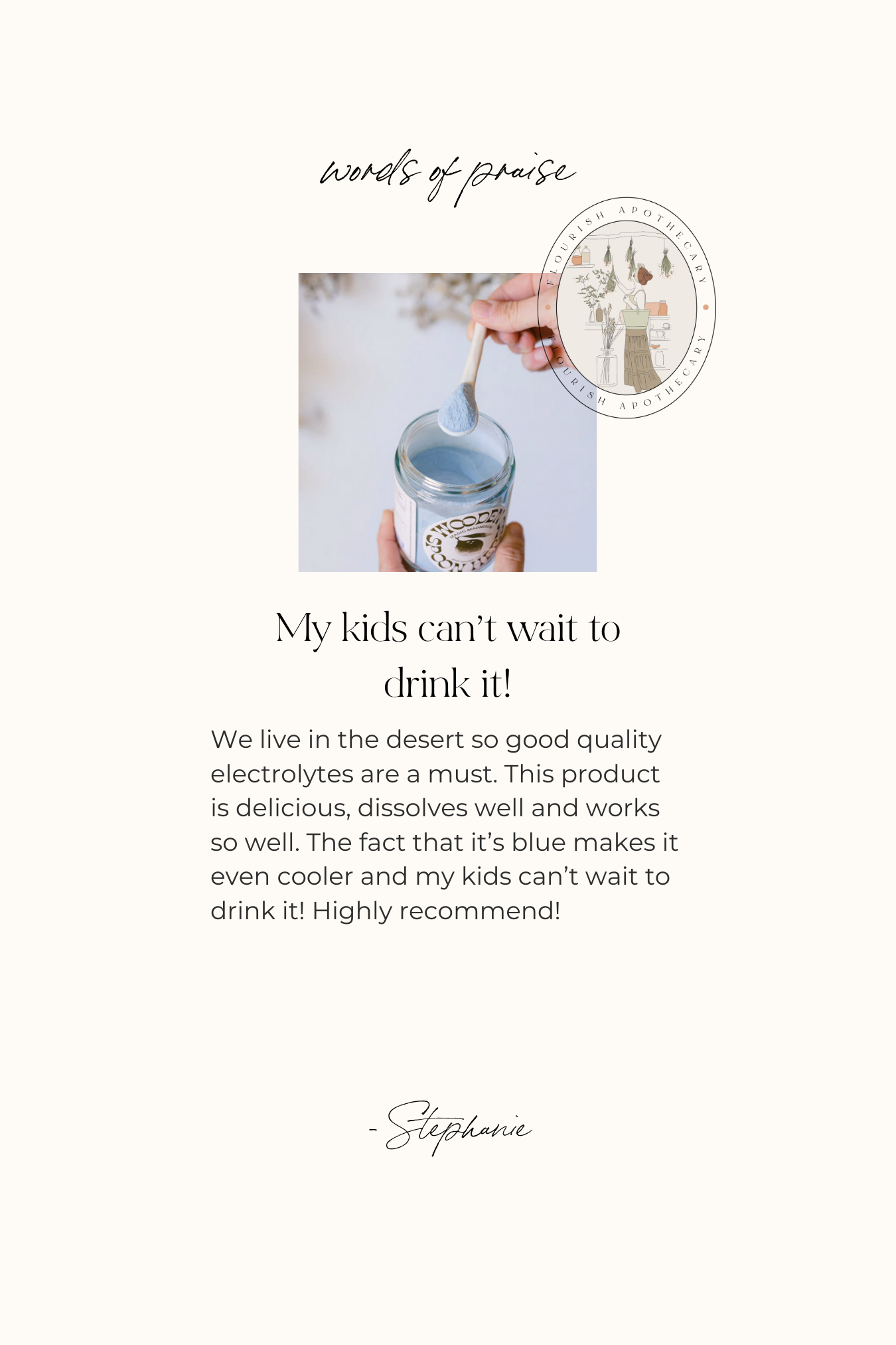 Take 1 teaspoon daily in 8-12 ounces of water. Garnish with a splash of lemon if desired. Can also serve with your favorite bubble water (hibiscus, ginger, and berry flavors are especially complimentary). Enjoy as an afternoon refresher or before bed for calming.